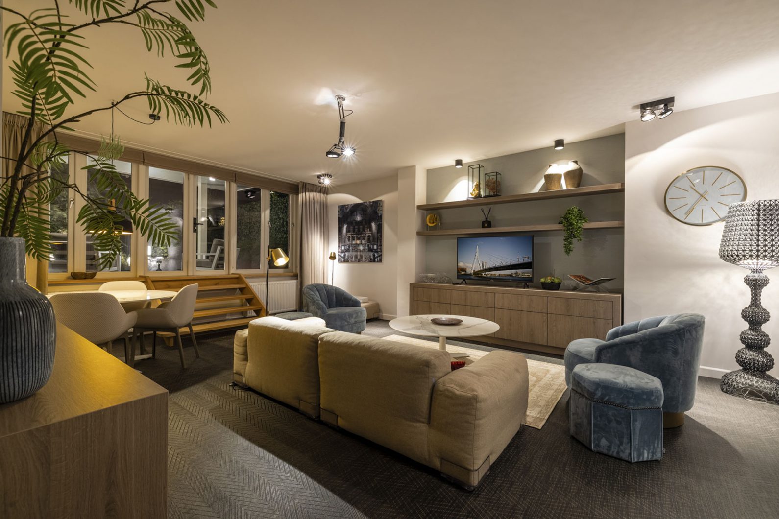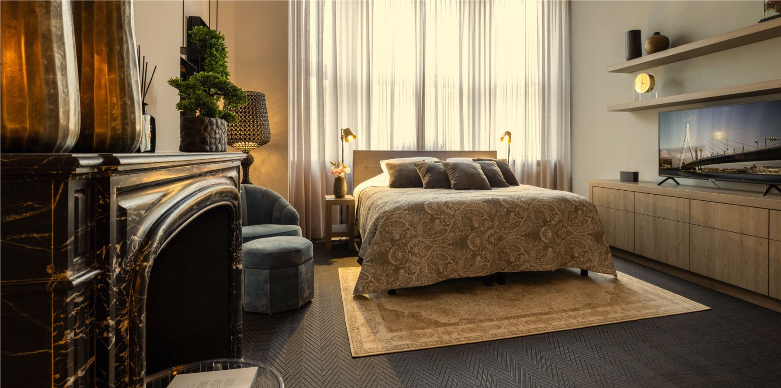 the best area of Rotterdam’s city center. Your residence is adjacent to an attractive Park and the waterside of the walking boulevard of the river “Maas”