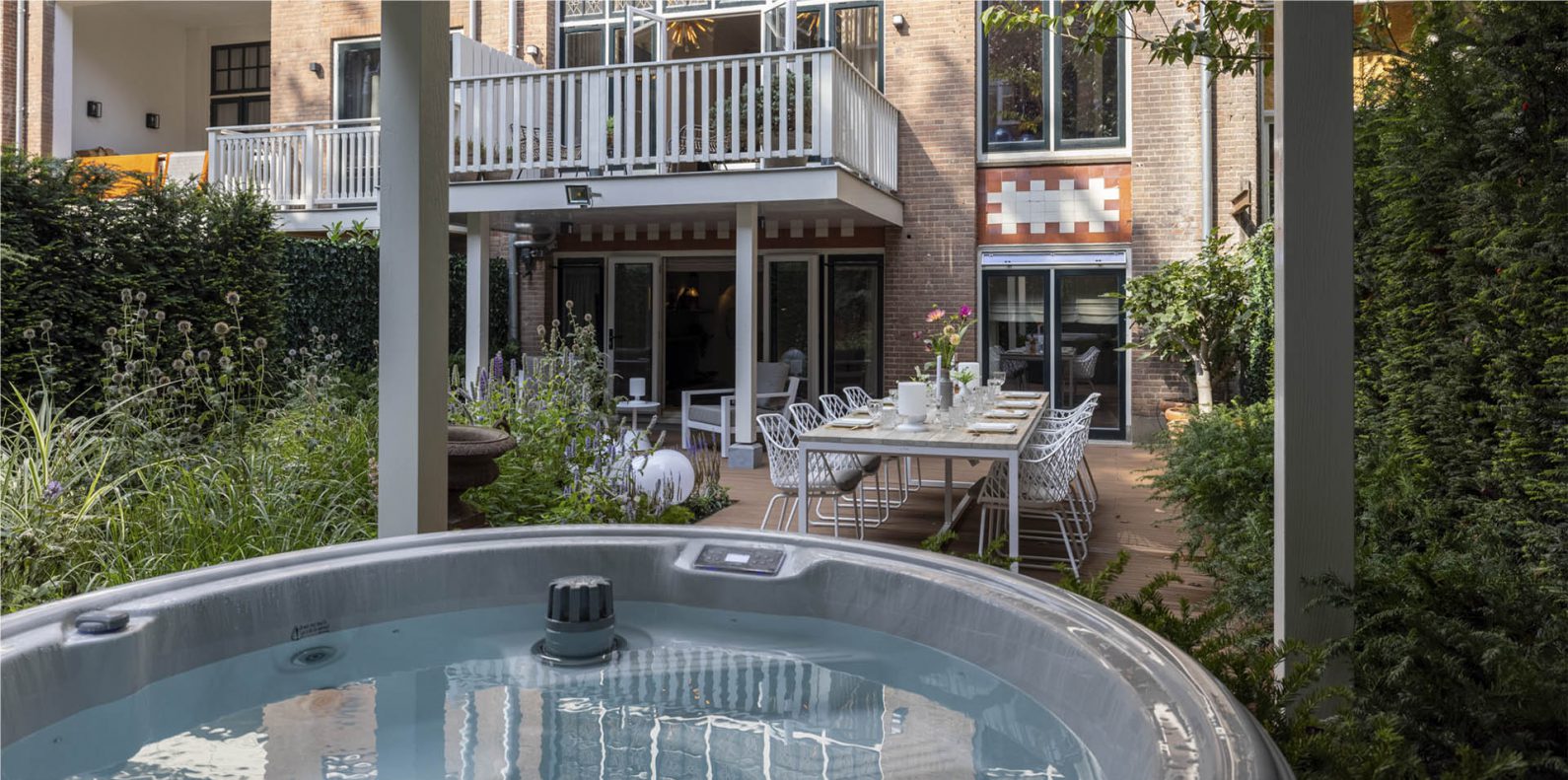 This unique residence gives your family or business relatives a private wellness garden with jacuzzi and dining facilities, a private gym and a second entrance for your staff.